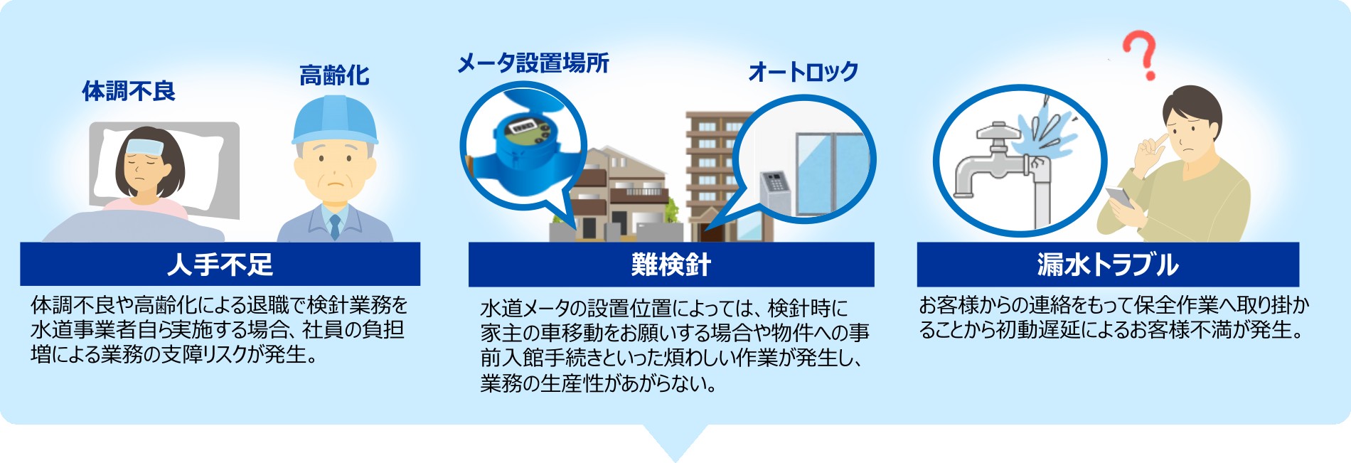 これは、利用者宅での配管破損や蛇口の閉め忘れなど、緊急対応が必要な事象を早期に発見するための重要な機能です。